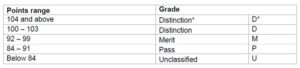 The table below shows the point’s ranges and the grades that those ranges achieve.